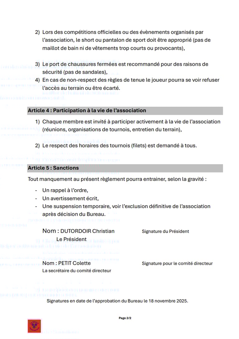 Sur cette page vous trouverez le règlement intérieur du club ainsi que celui de la FFPJP.